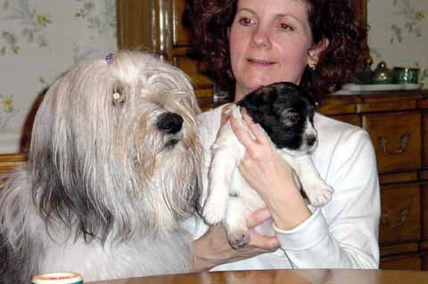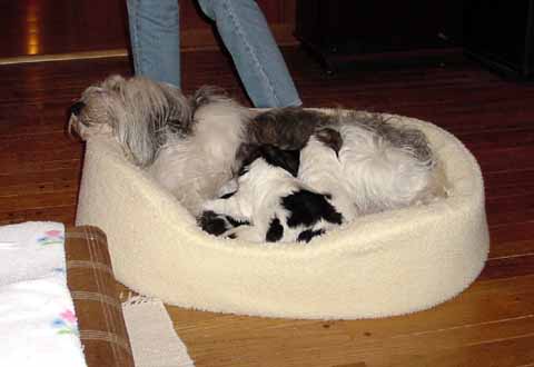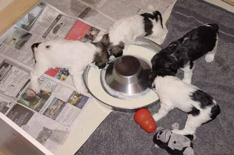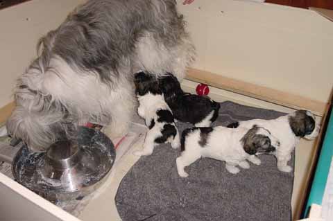 Chip & Dillon taking a drink, Violet & Abby thinking they want out of this box!